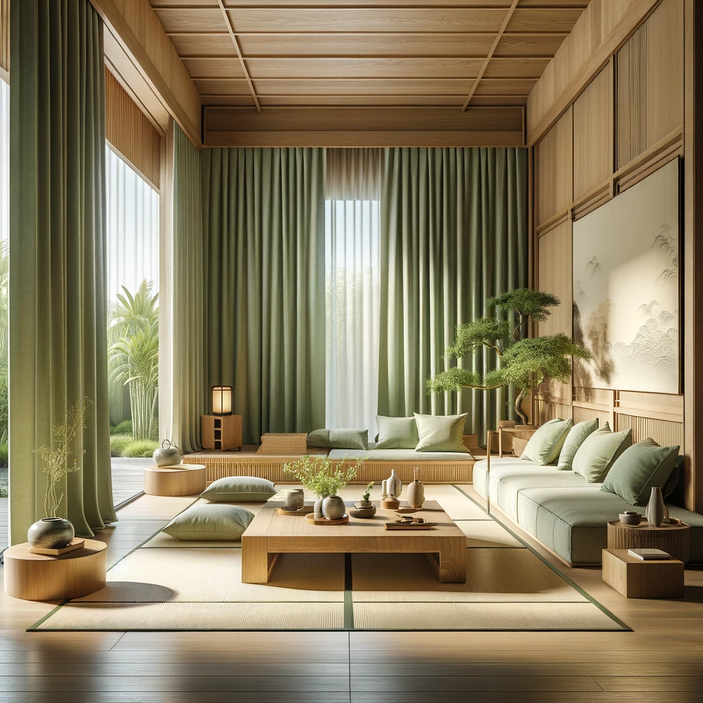 日式風格主打自然和諧與精緻細膩,窗簾顏色可以選擇白色、裸色、米色和淺綠色等。這些顏色能夠主打日式風格的寧靜與純淨,為家居空間帶來一絲清新的自然氣息。
