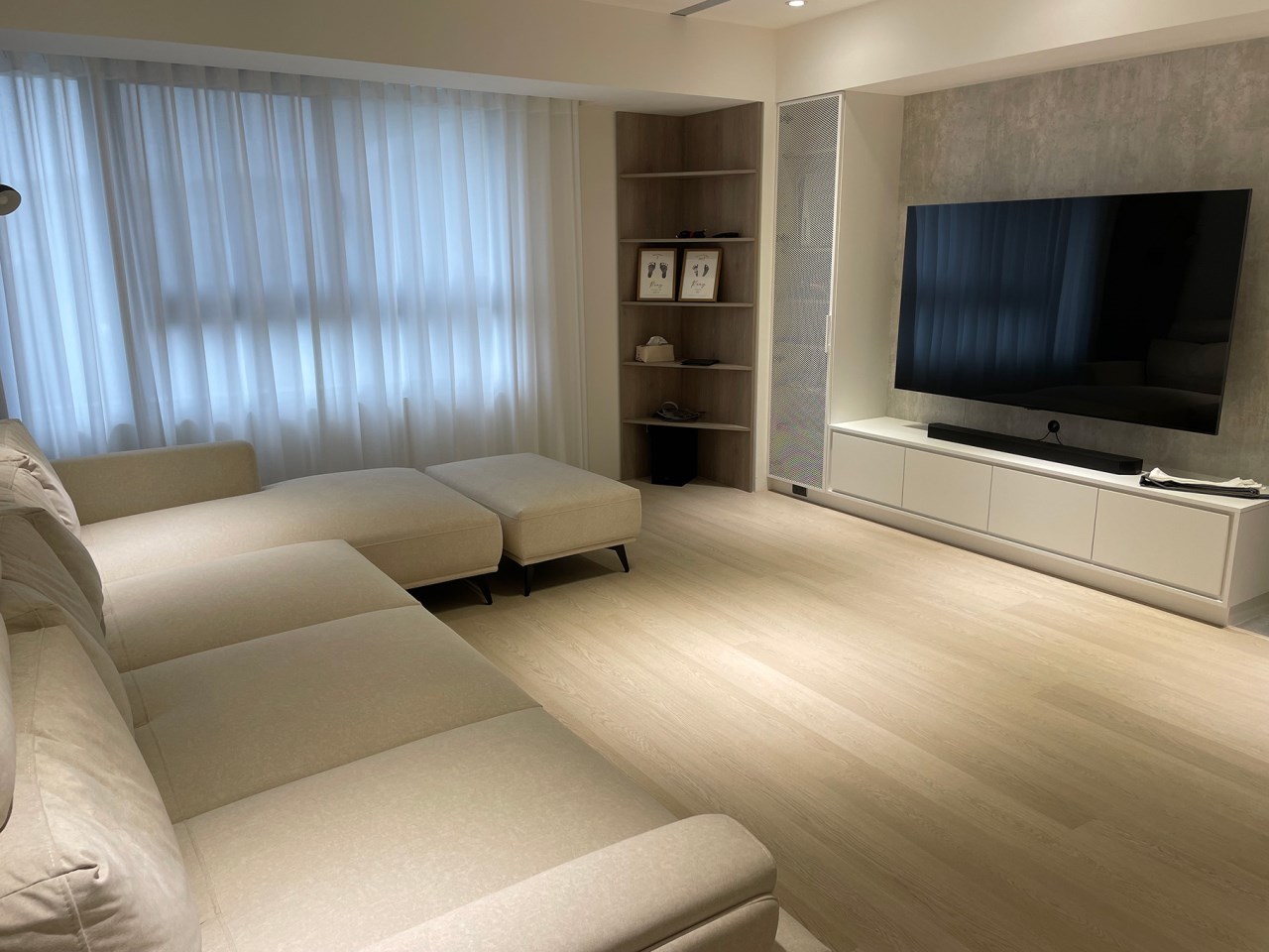 為什麼需要一個明亮的客廳?因為通常是客人來到家中,只要從客廳玄關進入,首先進入的空間一定是我們客廳的空間。為什麼這裡也可以把它當成我們的迎賓廳。在客人來到家中的這個時候,當然是希望能夠有一個氣派且明亮的客廳來好好招呼客人。這個時候,又會有一個問題:如果我們客廳空間日照太強時該怎麼辦?這個時候我們可以做雙層窗簾設計,一布一紗的形式來達成多種使用需求避免過度搶眼的顏色