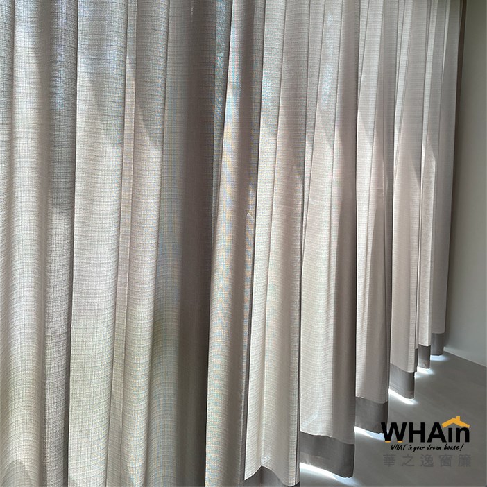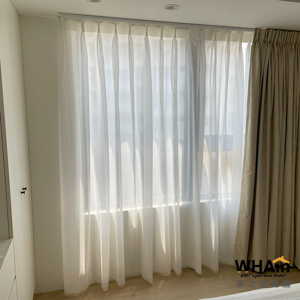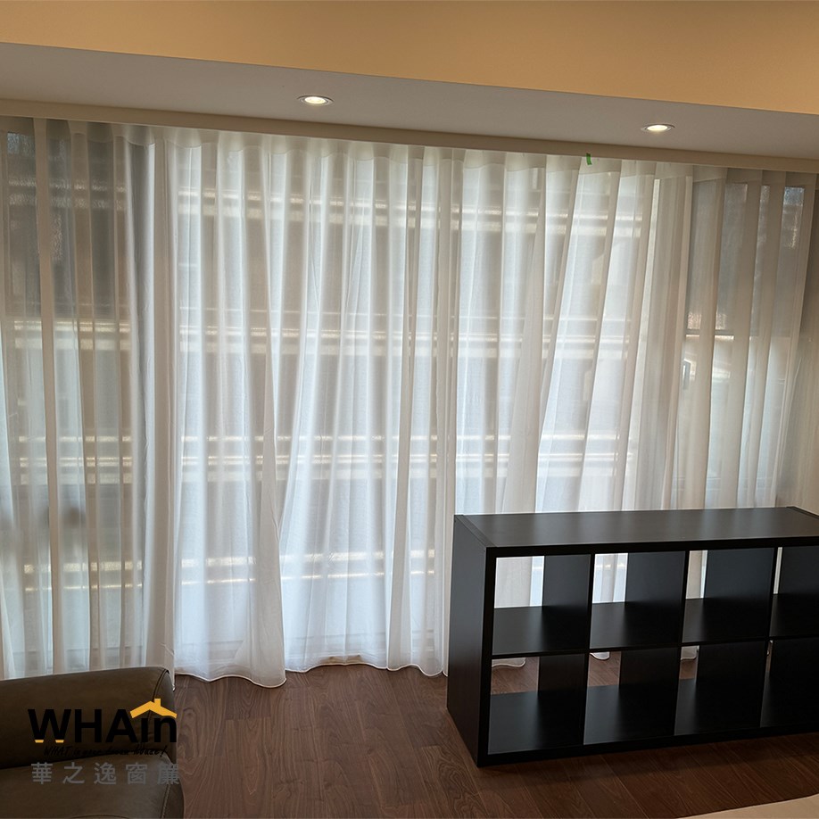 布簾材質白天使用紗簾讓自然光透進來,保持客廳的明亮和通風。晚上則可以拉上布簾,營造溫暖和私密的氛圍,適合會客或放鬆。